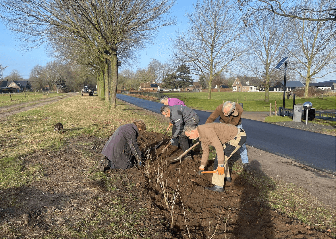 Zaterdag 21 februari stak een aantal bewoners van de Enk de handen uit de mouwen om hun buurt nog groener te maken. Jolanda Dreeuwes had het initiatief genomen om een Green Deal-project te starten op de Enk. De directe aanleiding was, dat er op het brede zandpad langs de Enk veel zandbijen in gaatjes in de grond leven. Een groep omwonenden sloot zich bij haar initiatief aan.