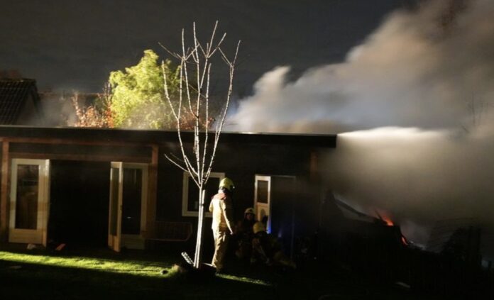 Het vuur werd rond 20.20 uur ontdekt en bij de brandweer gemeld. Toen die arriveerde was er al sprake van een uitslaande brand, die bovendien de schuur van een naastgelegen woning bedreigde. De brandweer kon niet voorkomen dat die schuur ook vlam vatte, maar kreeg het vuur wel onder controle en wist verdere overslag tegen te houden.