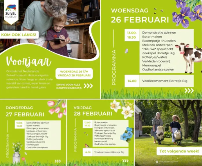 Wapenveld – Tijdens de voorjaarsvakantie opent het Nederlands Zuivelmuseum van woensdag 26 tot en met vrijdag 28 februari haar deuren, van 13.00 uur tot 16.30 uur.