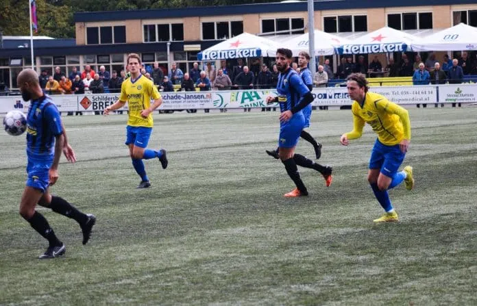 De Lelystadse formatie opende sterk en zette Hatto-Heim direct onder druk, waardoor het voor de geel-blauwen vooral een kwestie van tegenhouden was. Met enkele goede reddingen wist Jorick Mensink zijn doel tot halverwege de eerste helft schoon te houden, totdat Guido Pauw met een goede kopbal de doelman kansloos liet.