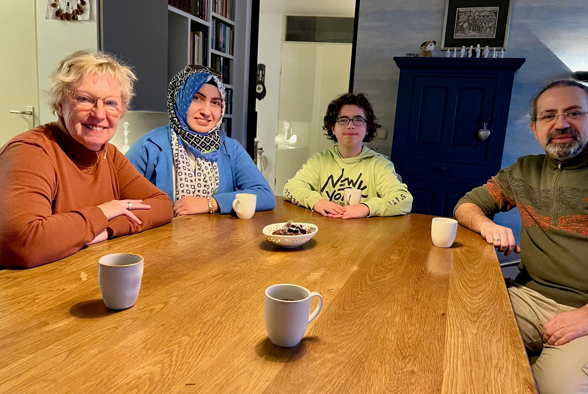 “We hadden een mooi huis en goede banen. Nu leren we alles opnieuw. In het begin voelde ik me dom als ik moest bellen”, vertelt Jakup. “Ik sprak geen Nederlands.” Zübeyde en Jakup volgden een taalcursus aan het Deltion in Zwolle en allebei hebben ze een taalcoach van Vluchtelingencontact. Yvonne Huurnink-Pool is bij het gesprek aanwezig.