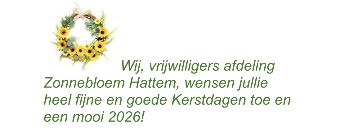 Heel fijne feestdagen toegewenst door Zonnebloem Hattem, Carla Hoekstra-Linde,
