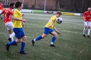 Gisteren speelde sv Hatto-Heim zijn achttiende wedstrijd, op bezoek kwam FC Horst uit Ermelo. Dat er wat op het spel stond voor beide teams was vanaf het begin af aan goed te merken. Er was veel strijd van beide kanten en het was aantrekkelijk wedstrijd om naar te kijken. sv Hatto-Heim begon voortvarend een goede voorzet van Bram Neuteboom maar daar kwam Robin van der Ziel net niet bij om gevaarlijk te worden. Een paar minuten later was het weer Bram die recht op de keeper afging, maar doelman Tim Crama van FC Horst redde knap. Twan van Rijssen en Elnathan van Dijk probeerden te scoren van afstand maar die ballen gingen hoog over het doel. Het spel speelde zich veel af op het middenveld en de ballen waren soms ook slecht onder controle te krijgen door de harde wind die dwars over het veld waaide. FC Horst hanteerde vaak de lange bal, omdat de geel/blauwen veel druk zetten op de bal. Een tegenvaller voor Hatto-Heim in de 35e minuut, aanvoerder Michel Koridon moest met een voetblessure het veld verlaten. Tijmen Neuteboom viel in en deed het ook erg goed in de verdediging deze wedstrijd. Na ruim 40 minuten speeltijd was daar de eerste grote kans voor de oranjehemden. Melle van Scherpenzeel zag zijn schot voorlangs gaan en er was geen medespeler in de buurt om het af te maken. Hierna nog een kans voor Twan van Rijssen, ook hij zag de bal voorlangs gaan. Net voor de rust nog een schot van Thijn van Wijk van Horst maar zijn inzet was een prooi voor Jorick Mensink.