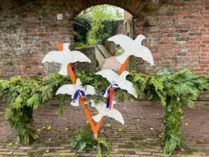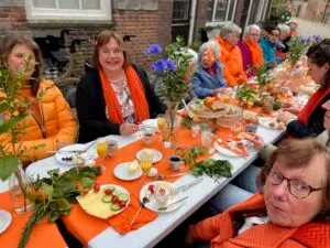 Op 26 april kwam de zon maar langzamerhand door de wolken. Tijdens de wat mistige start op de Markt hoorde je echter niemand klagen. Er werd zoals altijd meegezongen, geapplaudisseerd door de gedecoreerden, de scouting, HOV en de CMH. Ook het kleine groepje kinderen, dansend op de muziek van het Koningsspelenlied Bail bailalaa, kregen de handen op elkaar en hier en daar deed zelfs een volwassene een poging om mee te doen.