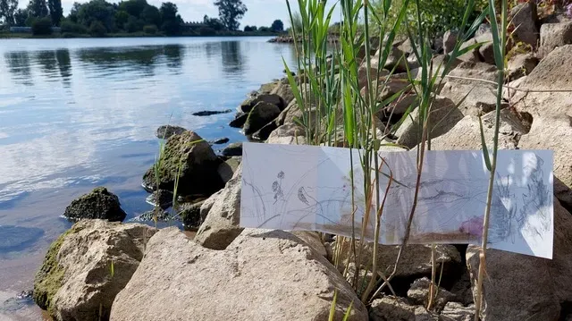 Het landschap van de IJssel is rijk aan hoogten, spiegeling en lijnenspel. Water, lucht en wolken zijn beeldbepalende elementen. IVN Zwolle: ‘We nemen de tijd om te kijken en te tekenen wat je waarneemt, wat je opvalt, wat je raakt. Voel de hoekigheid van een plantenstengel, zie de stroming van de rivier in een schelp, hoor de meest subtiele geluiden in dit landschap, ruik de geur van… Struin met ons mee tussen rivier en nevengeul, ook als je denkt niet te kunnen tekenen.’