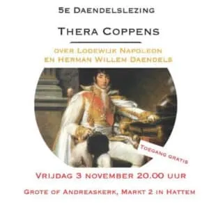 De 5e jaarlijkse Daendelslezing wordt op vrijdag 3 november gehouden in de Grote of Andreaskerk op de Markt en de aanvang is 20.00 uur (inloop vanaf 19.30 uur). De toegang is gratis. Spreekster is Thera Coppens, schrijfster van historische boeken en artikelen. Het onderwerp van haar lezing is koning Lodewijk (Louis) Napoleon en zijn echtgenote, de vergeten koningin van Holland Hortense de Beauharnais en hun relatie met de Hattemse patriot Herman Willem Daendels.