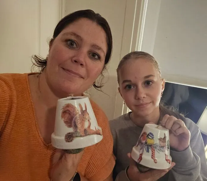 Hester en Noortje Rook verven, knippen en plakken inmiddels bijna dagelijks voor Serious Request Metakids. Het was Noortje van twaalf die haar moeder wist te bewerken om nog een keer de vogelpotjes te maken. Inmiddels zijn er bijna tweehonderd verkocht, maar stoppen doen ze niet.