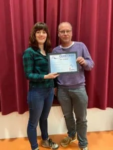 Gerrit-Jan Veluwenkamp werd op de jaarvergadering in januari in het zonnetje gezet voor zijn – maar liefst – 70 jaar lidmaatschap. In de weken daarna werden ook Roy Venekamp en Janette Brem (niet op de foto) gehuldigd voor 40 jaar lidmaatschap van de vereniging. Van voorzitter Mariëtte van Raalte kregen zij de bijbehorende versierselen en een mooie bos bloemen uitgereikt.