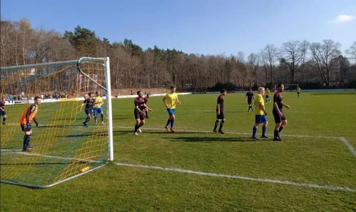 De geelhemden kwamen goed uit de startblokken en hadden de eerste kansen van de wedstrijd. Als Felix Noordberger en Wesley van Winsum op dat moment het vizier wat scherper hadden gehad, had vv Hattem op voorsprong gestaan. Binnen het kwartier waren het echter de bezoekers die de score openden. Een prima hoekschop werd door Jasper Mosterd haarfijn bij de eerste paal in de kruising gekopt en was doelman Stefan de Weerdt kansloos.