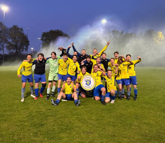 Op de fraaie lenteavond van 23 april heeft Hattem 5 zich in Dalfsen verzekerd van het kampioenschap. In de beslissende wedstrijd werd overtuigend met 1-5 gewonnen, waarna het feest losbarstte.