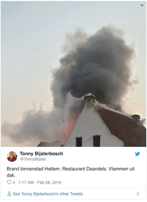 In Hattem woedt brand in een appartement in de historische binnenstad. Het appartement ligt boven restaurant Daandels, op de hoek van de Markt en de Kerkstraat.