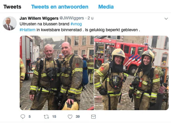 Burgemeester Wiggers over de brand in Hattem Door Redactie - 28 februari 2019 Mediapartner Omroep Gelderland heeft burgemeester Wiggers geïnterviewd over de brand in het centrum van Hattem. Bekijk hier het gesprek met de burgemeester: Via Twitter heeft de burgervader de brandweer bedankt voor hun inzet.