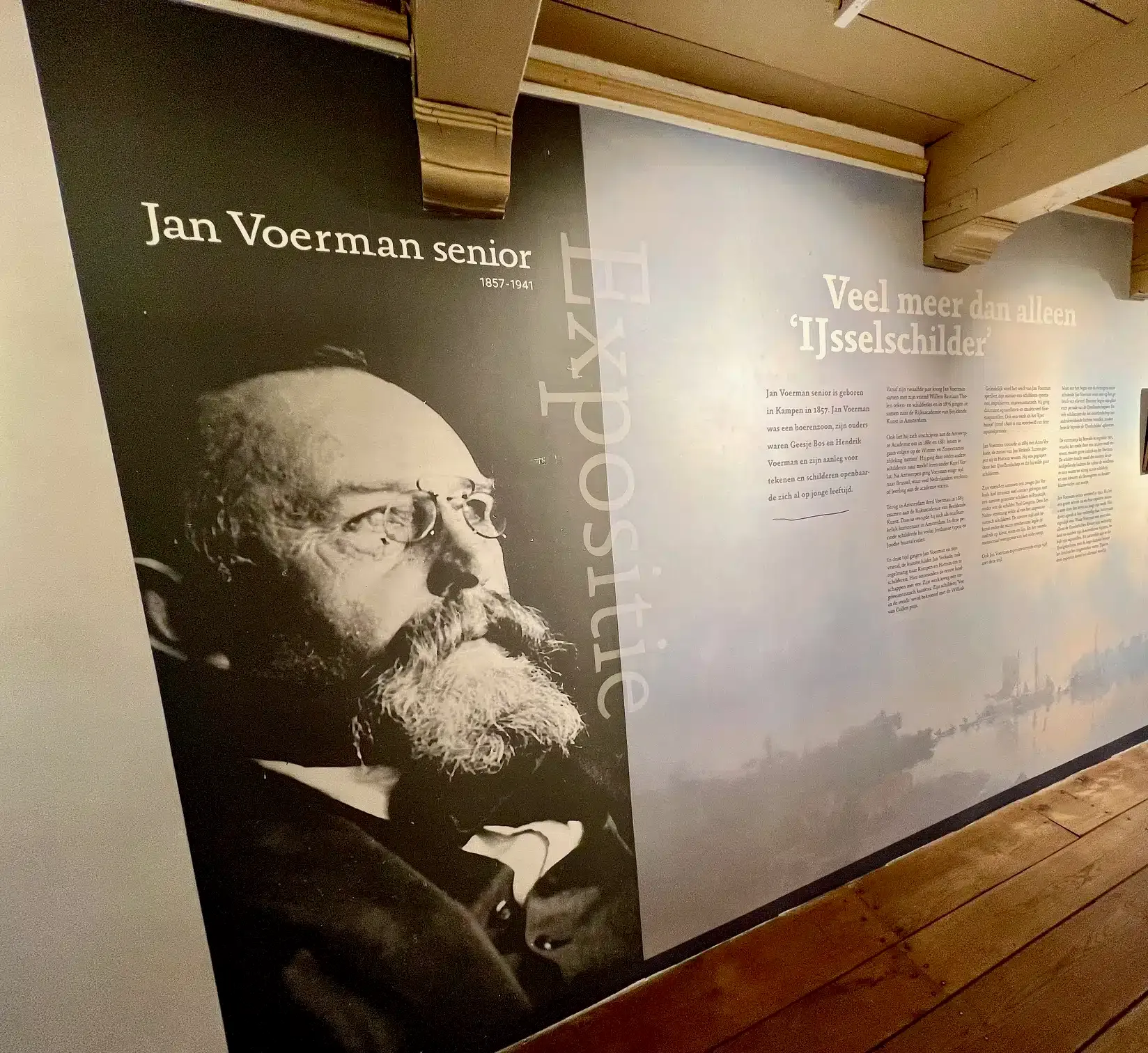 Voerman senior wordt ook wel de IJsselschilder genoemd, maar we zouden hem daarmee tekort doen. Hij mag dan aan de Geldersedijk genoten hebben van Hattem en de prachtige rivier, maar zijn oog had al zoveel meer gezien. Tijdens zijn ‘Amsterdamse periode’ daarvoor schilderde hij in de Jordaan, maar ook joodse huistaferelen en stadsgezichten. Schilderijen als de Schoenlappers en Armoede maken indruk omdat ze een beeld geven van hoe men toen leefde. Landelijke sferen daarentegen, weilanden en dieren maar ook een blik op Hattem, wist hij bijna romantisch vast te leggen. In Hattem aangekomen, is hij niet meer vertrokken. Het was voor hem een heus paradijs: ‘Wie in het paradijs woont, wenst het niet te verlaten’. In 1941 overleed Voerman op 84-jarige leeftijd.
