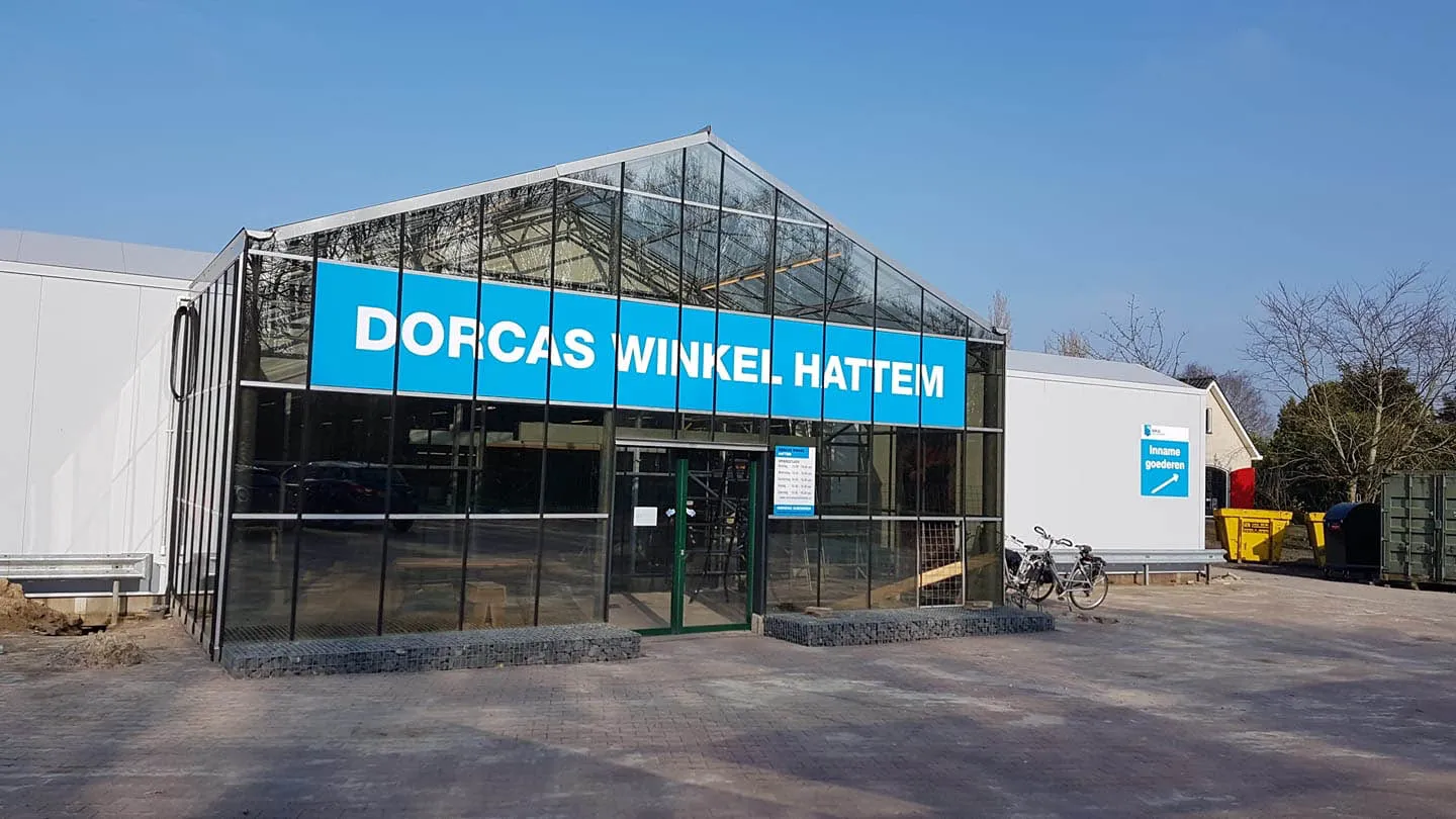 Hulporganisatie Dorcas opende vrijdag officieel haar nieuwe kringloopwinkel in het voormalig pand van Groenrijk aan de Zuiderzeestraatweg in Hattem. (tekst gaat verder na de video)