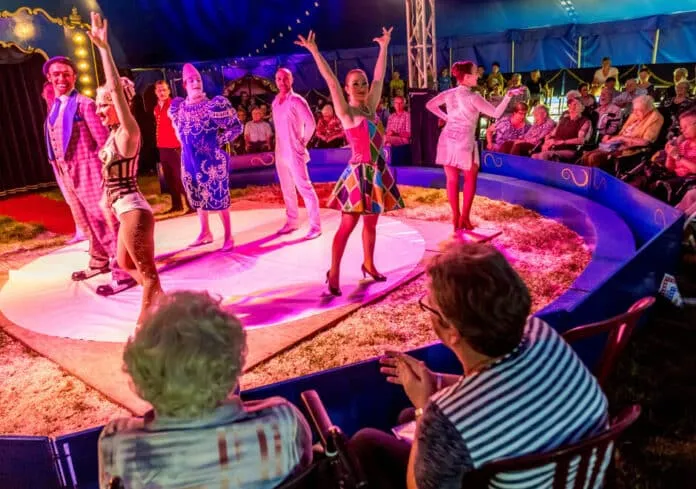De show zelf is al net zo persoonlijk en helemaal afgestemd op de belevingswereld van het publiek. Of dat nu ouderen, gehandicapten of mensen met een beperking zijn. Bij binnenkomst in de circustent begeleiden de artiesten de bezoekers, in rolstoel of te voet, naar hun plek. Zit iedereen? Dan gaan de lichten uit, start de muziek en stapt de circusdirecteur in de spotlight. De show begint.