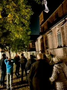 Het hoogtepunt van de wandeling was het toch horen (via de detector) en zien van zeven verschillende soorten vleermuizen in het licht gericht op de Kerktoren. De Grote of Andreaskerk is erg geliefd bij vleermuizen. Waar ze in de winter gaan overblijven is niet bekend.