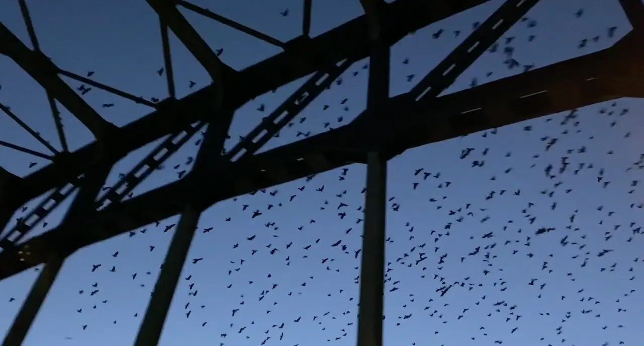 De boog van de oude IJsselbrug tussen Hattem en Zwolle is populair bij kauwen. De zwarte kraaiachtigen nestelen er in de zomer, en in de winter is het een populaire slaapplaats.