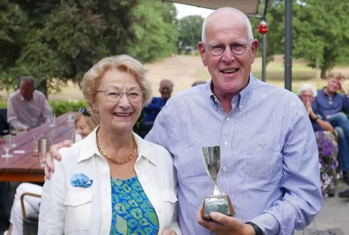 Anneke Olland was zo vriendelijk om zelf de beker uit te reiken en vertelde daarbij de bijzondere historie van dit jeugdkampioenschap. Want in de finale destijds stond Rolf vóór, maar door een fout van de caddy kreeg hij een stok van zijn tegenstander in de vingers geduwd, sloeg ermee en was daardoor gediskwalificeerd. En verloor dus de wedstrijd! Zijn tegenstander, formeel de winnaar dus, wenste echter op die onsportieve manier niet kampioen te worden en stond er op, dat de wedstrijd werd overgespeeld. Dat gebeurde, Rolf won en werd alsnog kampioen. Een beker met een verhaal dus, die nu aan een “tweede leven” begint!