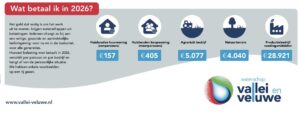 Het Waterschap Vallei en Veluwe wil de basis op orde houden (dijken, watersysteem, waterkwaliteit, rioolwaterzuivering) en investeert in toekomstige opgaven. Hierdoor stijgen de waterschapslasten in 2026. Dit betekent een belastingstijging voor: gemiddeld huishouden in huurwoning: + 35 euro; meerpersoonshuishouden met eigen woning: + 34 euro; alleenstaande huurder: + 17 euro.