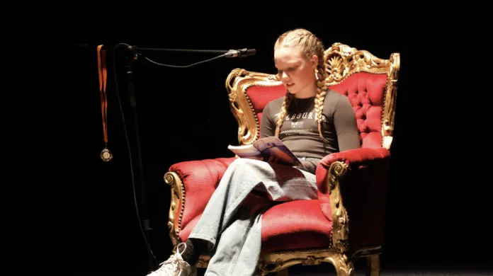 De rode troon staat in de spotlight op het midden van het podium klaar. In het publiek worden nog snel wat yells geoefend. Veel tijd hebben ze niet, want Henriëtte Lokhorst staat klaar om de finale te openen. De finalisten worden met een groot applaus ontvangen en nemen plaats op de voorste rij.