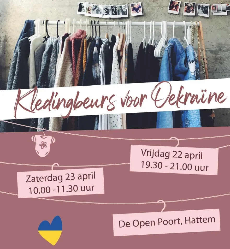 Eind april is er bij De Open Poort een beurs waar kleding voor volwassenen en kinderen én speelgoed worden verkocht. De opbrengt van deze verkoop is voor 100% voor Oekraïne.