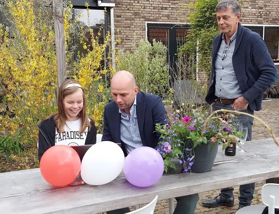 Britt, dochter van wethouder Auke Schipper, was vanmiddag met de laptop actief op Shoppen in Hattem. Onder toeziend oog van HAVO-voorzitter Klaas van Dieren en pa Schipper deed zij de eerste officiële bestelling bij een Hattemse winkel.