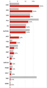 Dit is de voorlopige uitslag van de Tweede Kamerverkiezingen – 30 oktober, 04.35 uur met 9957 kiesgerechtigden en een opkomst van 87,7%: