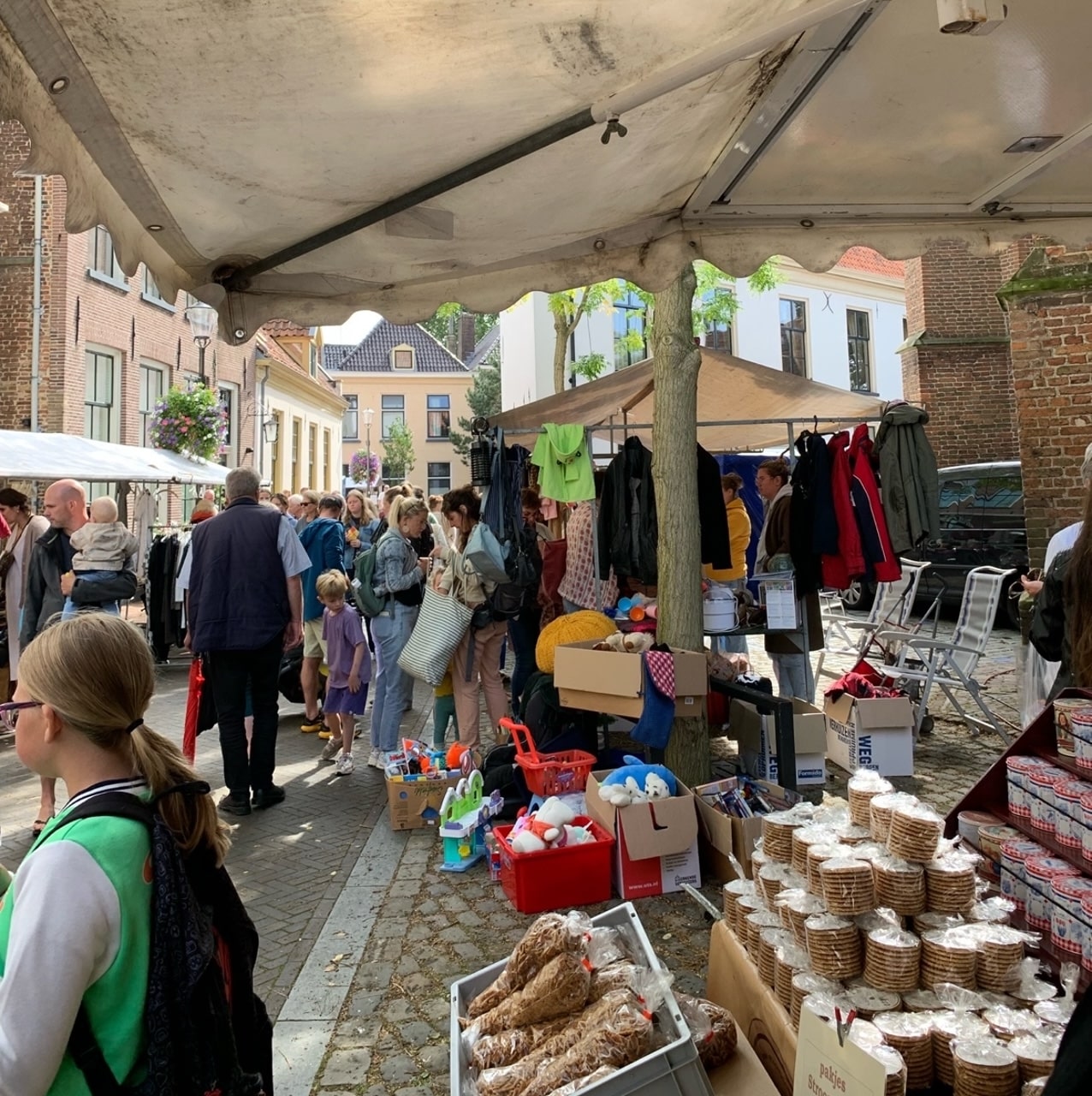 De lage prijzen zorgen er wel voor dat mensen sneller aankopen doen die ze anders nooit gedaan zouden hebben. De Hattemse rommelmarkt is dan ook de perfecte plek om je vrienden en familie te leren kennen: kunnen ze zichzelf in bedwang houden? Zinnen als ‘heb je niet zoiets al thuis liggen?’ of ‘heb je dit écht nodig?’ hoorde je de hele dag. Zo liepen er twee vriendinnen langs een kraam waarvan de een aandachtig zat te kijken naar wijnglazen, waarop de ander meteen riep ‘het moet je huis ook nog uit hè’.