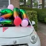 Onderweg naar een persmoment kwamen we 4 juni rond het middaguur deze auto tegen. Wilde de eigenaar de versierselen nog even laten zitten, blij...