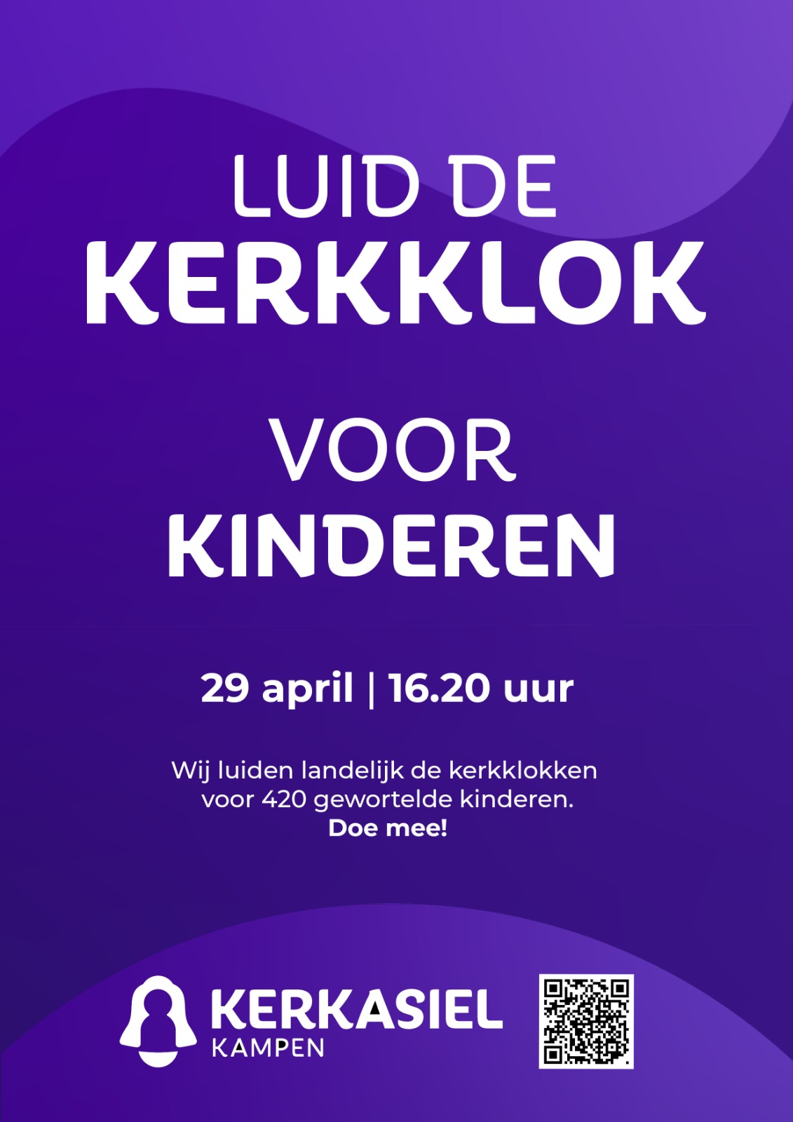 Met deze landelijke actie vraagt de organisatie van kerkasiel Kampen aandacht voor de positie van kinderen die hier zijn opgegroeid, maar nog altijd in onzekerheid leven over hun toekomst. Ze worden ‘gewortelde kinderen’ genoemd. De organisatie hoopt dat op 29 april in heel Nederland een gezamenlijk geluid klinkt. Het doel is dat ieder geworteld kind een stem krijgt en dat er voor elk kind een klok luidt. Daarvoor zijn in totaal 420 klokken nodig. De symboliek van het tijdstip is bewust gekozen: ‘vier uur twintig’ verwijst naar de 420 gewortelde kinderen voor wie aandacht wordt gevraagd.