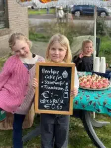 ‘Natuurlijk verzamelen we ook goederen en geld (lees meer hierover op de website, red.), en is er eten en drinken te koop voor het goede doel. Nu al proberen kinderen hun microkrediet van € 2 in te vermenigvuldigen. De opbrengst brengen ze op 6 april ‘s middags mee naar het event.’