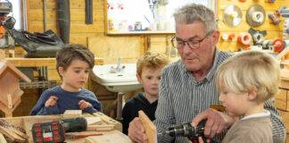 Mini’s Thomas, Tijs en Bastijn helpen trainer Haverkamp met vogelhuisjes