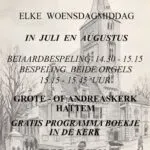 In Hattem worden negen zomermarktconcerten gehouden met beiaard- en orgelbespelingen in de Grote of Andreaskerk. Ieder concert begint om 14.30 uur. Na een bespeling...