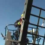 De wieken van molen de Fortuin in Hattem zijn inmiddels volledig gestript van al het houtwerk als voorbereiding op het vervangen van de roeden....